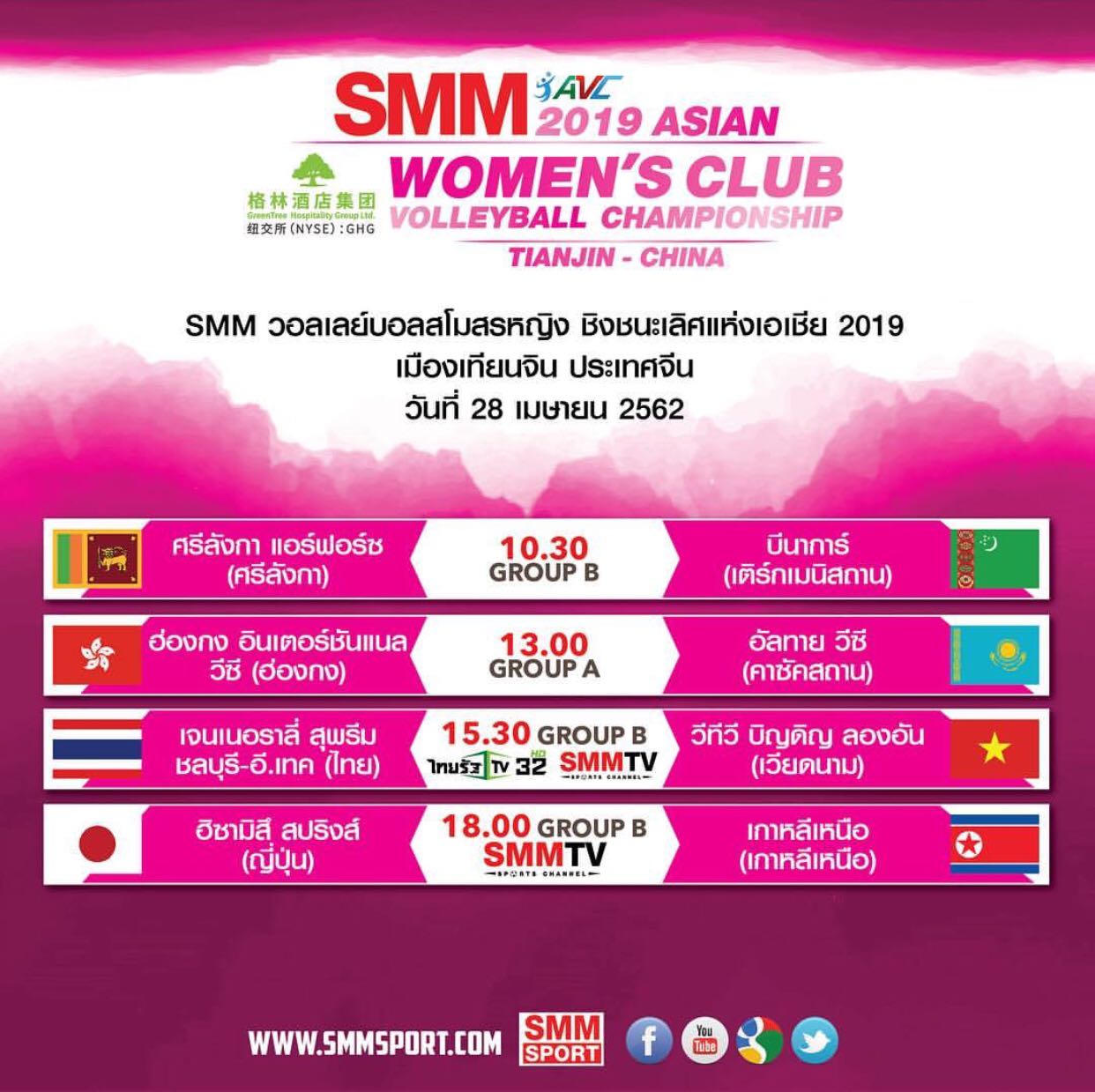 โปรแกรมการแข่งขัน SMM วอลเลย์บอลหญิง ชิงชนะเลิศแห่งเอเชีย วันที่24 สิงหาคม 2562 { พรุ่งนี้ }