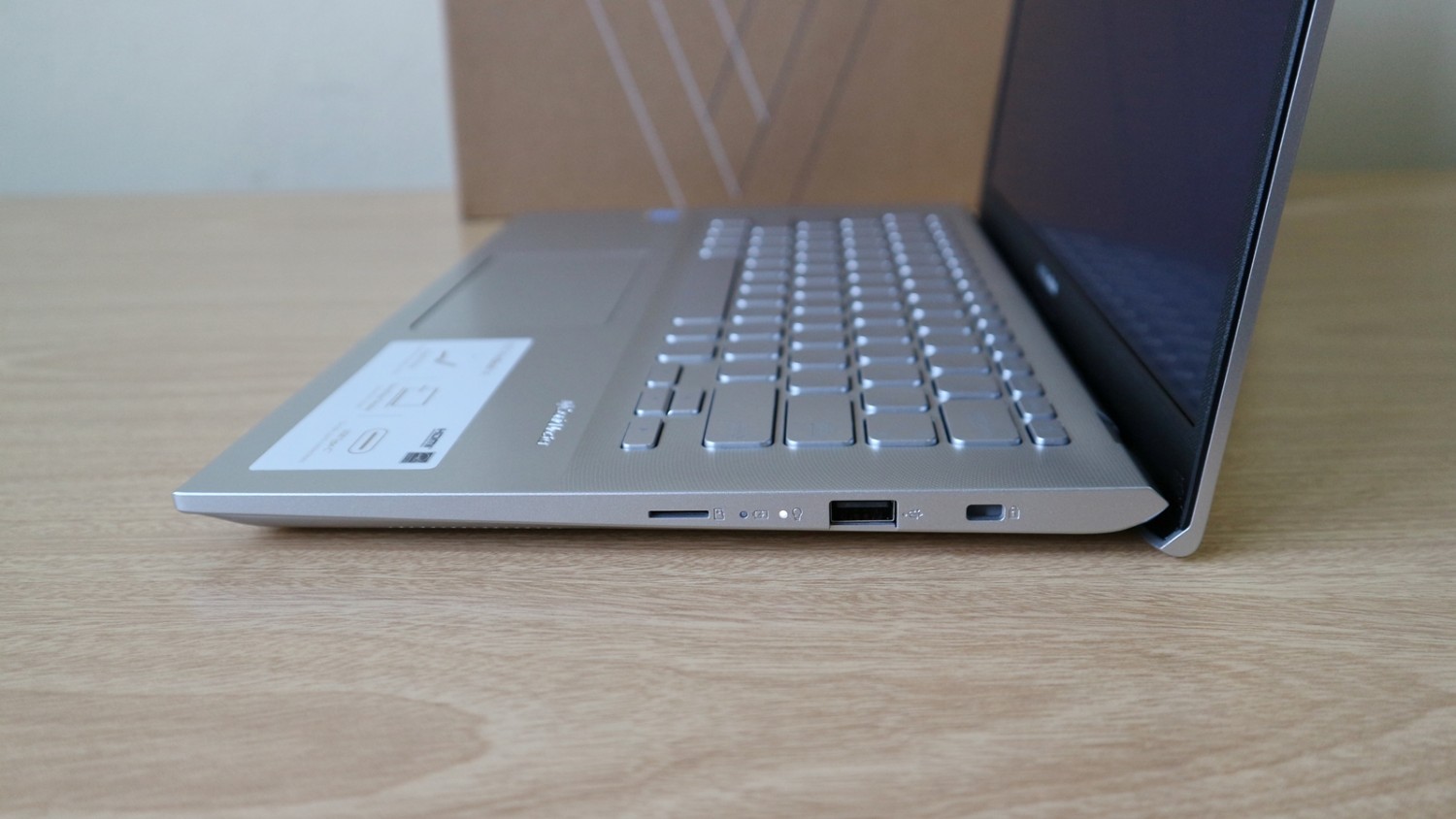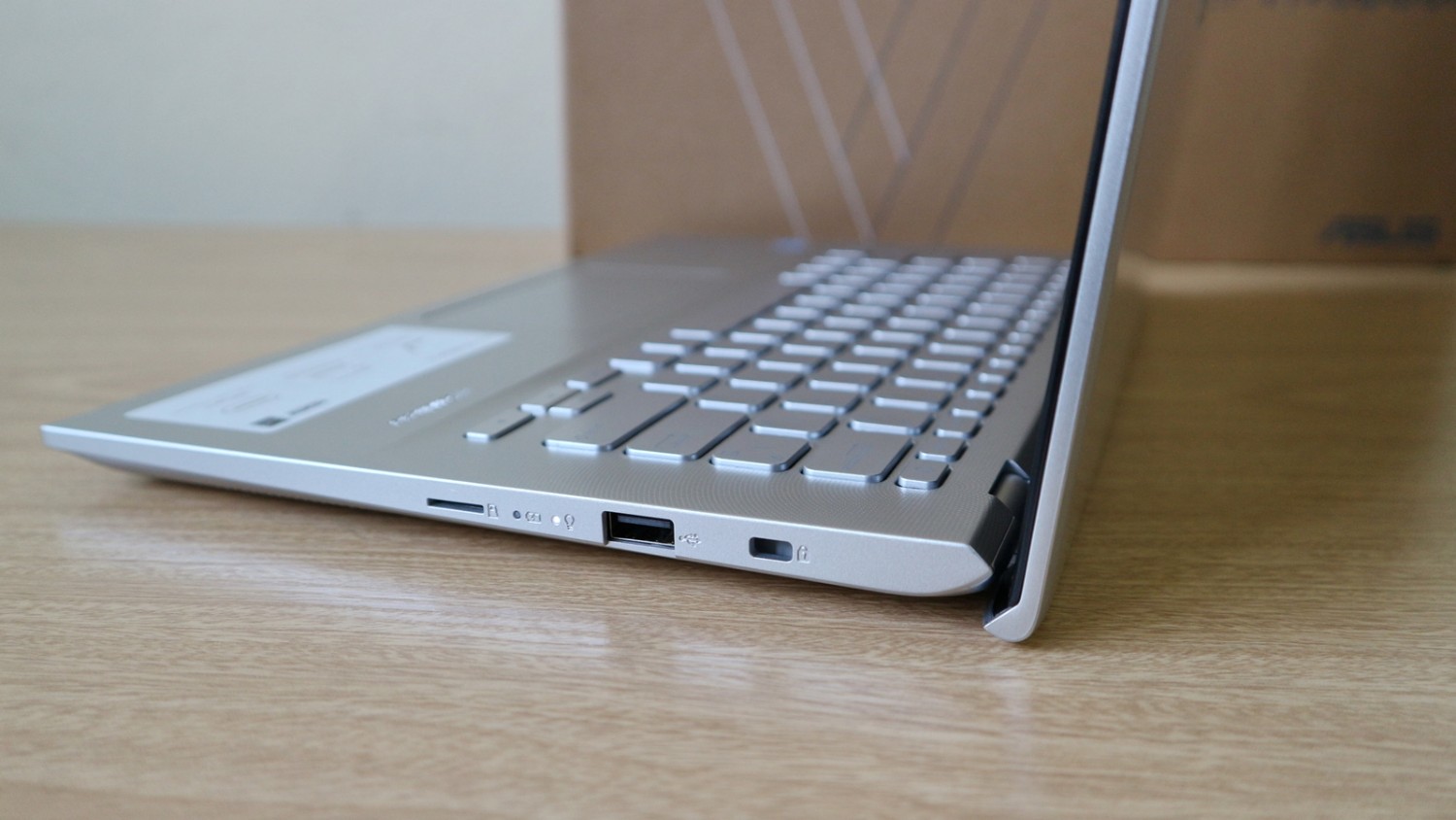 ASUS VivoBook 14 (X412) มีพอร์ตเชื่อมต่อมาให้ครบมากๆ ฝั่งซ้ายจะมีช่องต่อไฟ AC / HDMI / USB 3.1 Gen 1 / USB-C และช่องต่อหูฟังแบบ combo