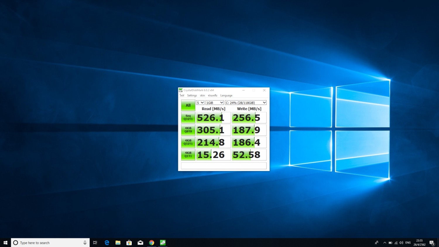 จุดเด่นของรุ่นนี้คือหน่วยความจำให้มา 2 แบบในตัวเครื่องคือ SSD ขนาด128GB และ HDD ขนาด 1TB เพียงพอแล้วครับกับหน่วยความจำระดับนี้ ความเร็วของ SSD ก็ถือว่าสอบผ่านกับงบประมาณระดับนี้