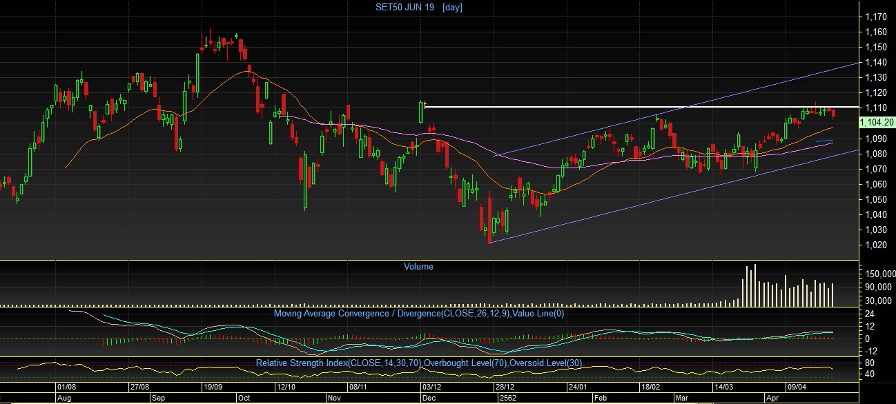 S50M19 TF Day: ตลอดทั้งสัปดาห์ที่ผ่านมา ดัชนีเคลื่อนไหวแกว่งตัวในกรอบ (1090-1111 จุด) โดยสามารถขึ้นไปปิด. Gap ที่เคยเปิดทิ้งไว้