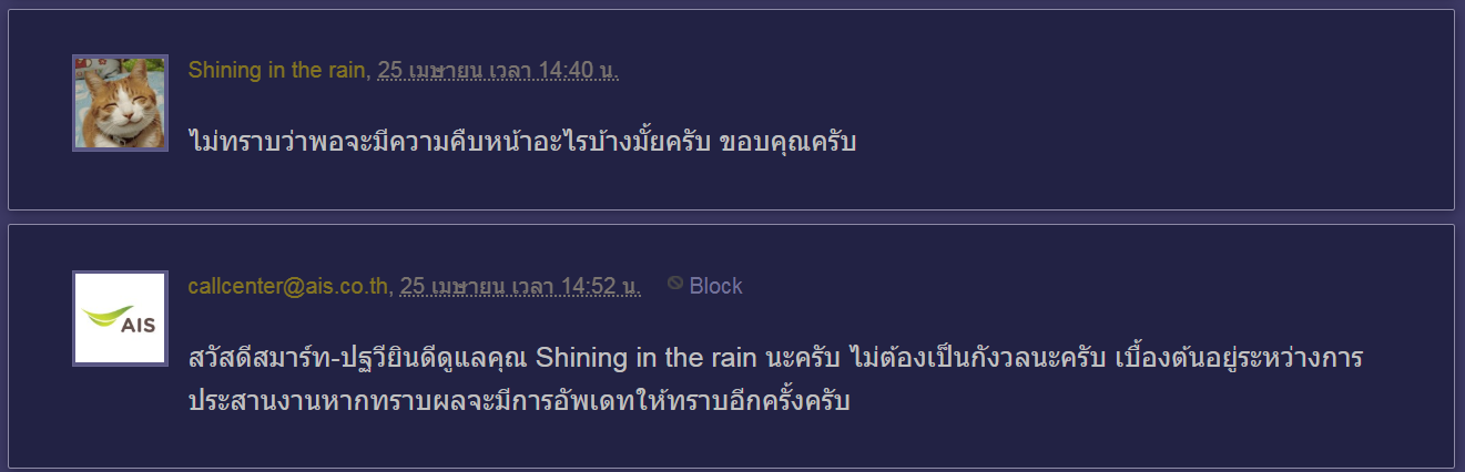 ที่จริงก็ได้หลังไมค์คุยกับทาง CC AIS ตั้งแต่ 14/4/62 ก็มีแต่การเตะถ่วงไปเรื่อยๆ