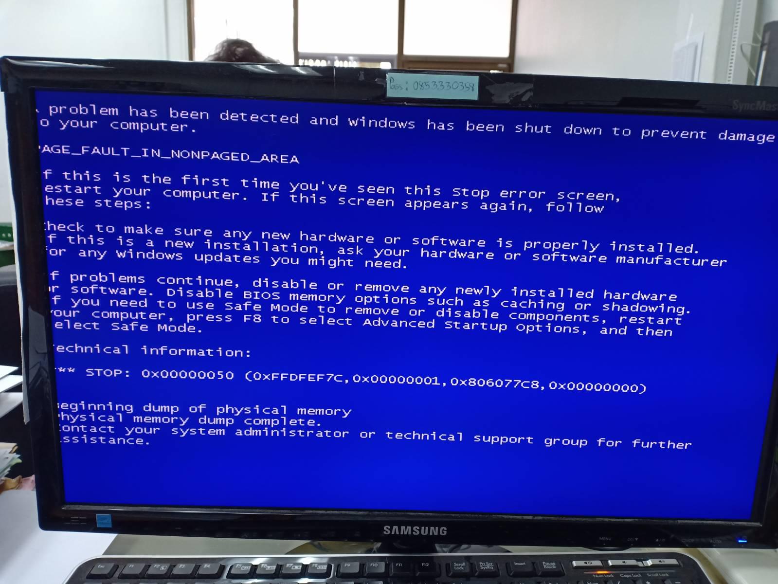 รบกวนผู้รู้เรื่องคอมพิวเตอร์ช่วยด้วยค่ะ เครื่องคอมฯPC ที่บ้านใช้เป็นเครื่องขายของในร้านมินิมาร์ทค่ะ เป็นระบบปิด ไม่ต่ออินเตอร์เน็ทค่ะ ใช้window XP ค่ะ แต่แล้วจู่ๆเครื่องก็ขึ้นหน้าจอสีฟ้ามีข้อความนี้
