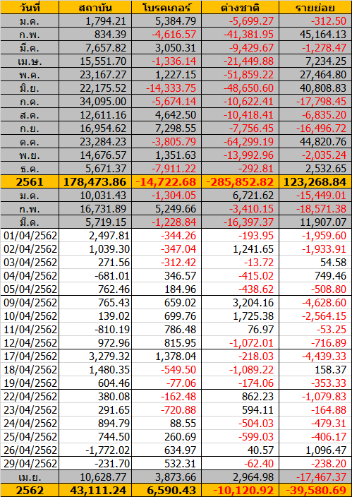 Sinthorn Summary 19/4/2562 : ต่างชาติขายสุทธิ -174.06 ลบ.
