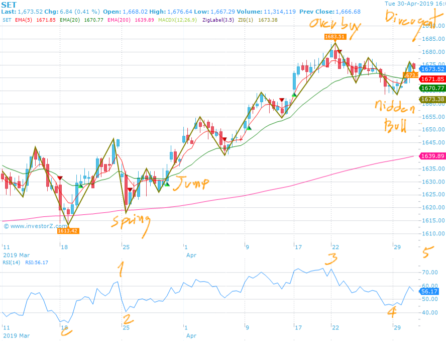 กราฟเมื่อเข้าเขต Over buy แล้ว จะทำ hidden bull