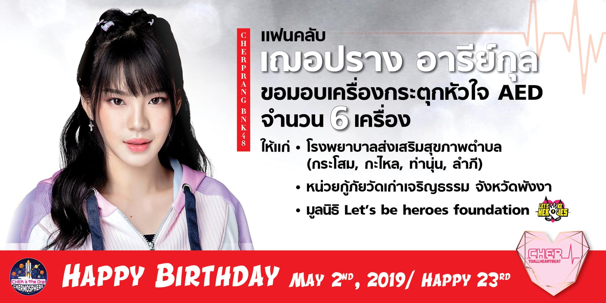 ในวันเกิดน้อง 2/5/2019 ทางร้านมีโปร ถ่ายรูปกับป้ายน้องแล้วโพสในโซเชียลใดก็ได้ ติด #CHERDAY23Y #cherprangbnk48
