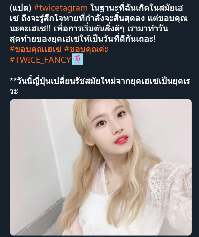 ซานะ Twice พูดถึงวันสุดท้ายในรัชสมัยเฮเซ ที่ญี่ปุ่น🇯🇵
