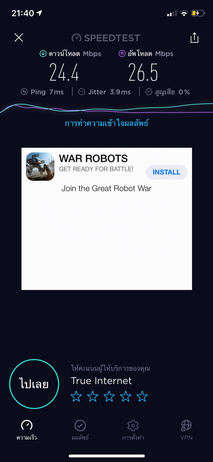 พอกลับมาถึงบ้านประมาณ20.30น. ก็ทำการปิดเครื่องแล้วเปิดอัพเดทสัญญาณอินเตอร์เน็ตใหม่ ผลปรากฏว่า เน็ตแย่กว่าเดิม ตามรูปเลย จากที่ได้ใช้ปกติ