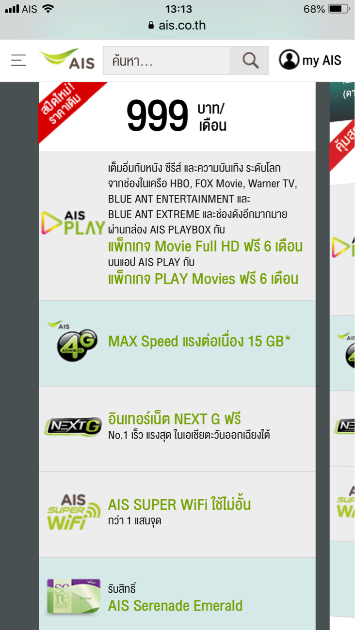 ตอนนี้ใช้ AIS Power4 MAXX Package 300/100 Mbps 999B. Power4 MAXX 300/100 Mbps bundled with 4G/3G Max Speed 15GB จะสิ้นสุดวันที่ : 7 ตุลาคม 2563 23:59:59 เล
