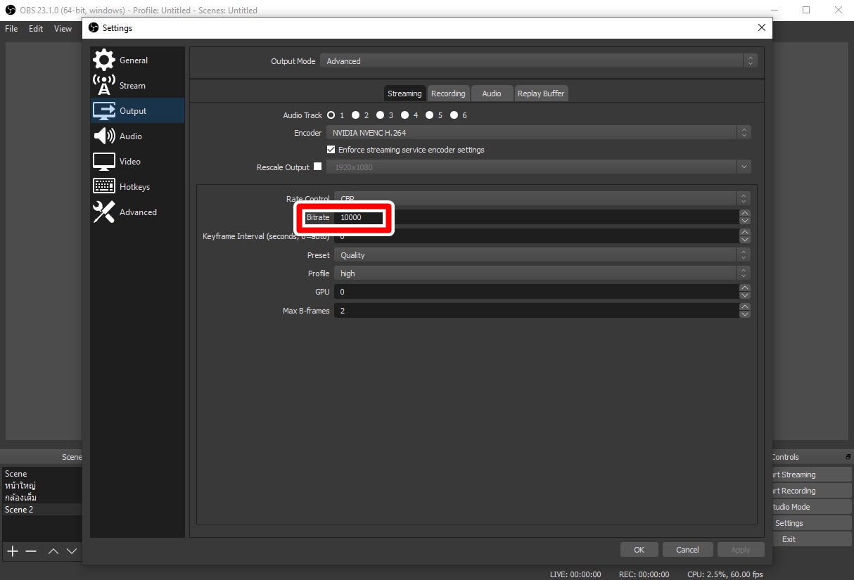 สตรีมผ่าน obs บิทเรตไม่วิ่งตามที่เราตั้ง