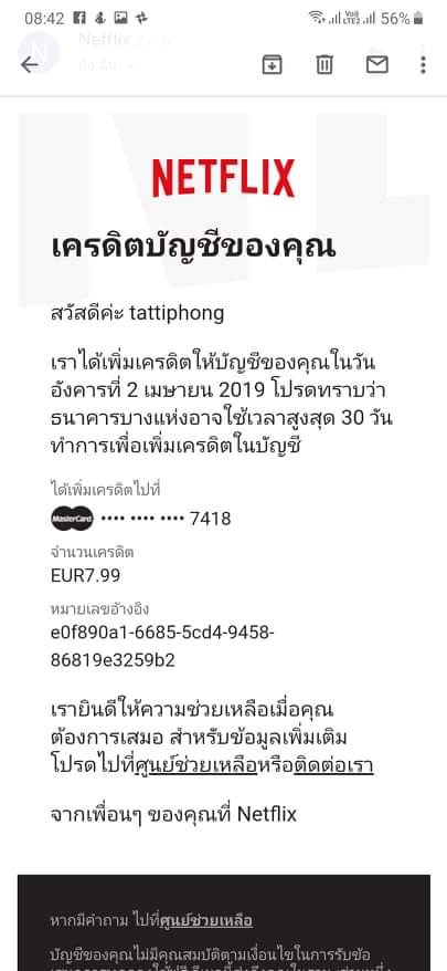 เครดิตเงินจากการขอคืนเงินNetflixไม่เข้าในบัญชีธนาคารไทยพาณิชย์