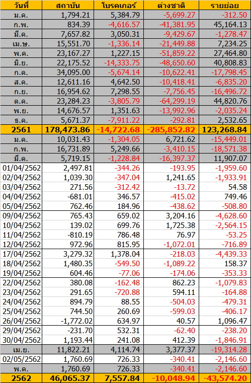Sinthorn Summary 2/5/2562 : ต่างชาติขายสุทธิ -340.41 ลบ.
