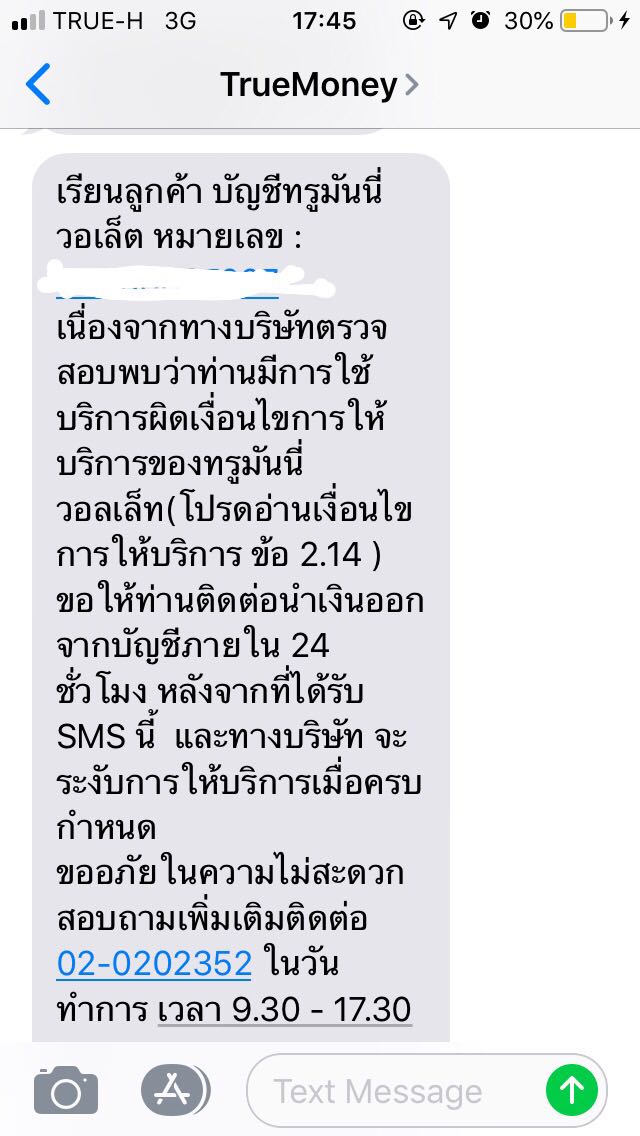 พอโทรไปหาเจ้าหน้าที่ ได้คำตอบว่า เพราะเราโอนเงินเข้าทรูวอยเลท แล้วโอนเงินเข้าบัญชีธนาคารบ่อยครั้ง มันทำให้ต้องถูกระงับ ถามหน่อยจะมีไว้ทำไมบริการโอนเงินพรอมเพย์ โอนเงินเข้าบัญชีธนาคาร ถ้าใช้บ่อยๆแล้วถูกระงับ ไม่ต้องเปิดตั้งแต่แรกเลยดีใหมล่ะ เสียความรู้สึกมาก ถ้าใช้บ่อยๆแล้วจะระงับ ปิดบริการนี้ไปเลย จะได้ไม่ต้องใช้กัน ผมใช้ทั้งจ่ายค่าไฟ สมัครเน็ตทรู เติมเงินโทรศัพท์ โอนเข้าบัญชี จ่ายเงินซื้อของที่ร้านสะดวกซื้อ แต่สิ่งที่คุณทำล่ะ มันเสียความรู้สึกมาก พออธิบายกับเจ้าหน้าที่เยอะๆกลับ ไม่ฟังสิ่งที่ผมกำลังพูดพูดแข่งกับผม แถมยังวางสาย นี้หรอการบริการที่ดี ถ้าจะให้ใช้แล้วได้แบบนี้ ปิดไปทั่งองค์กรเลยไหม โมโหมาก บอกเลยถ้ามันระงับเมื่อไหร่ทั้งบ้านคือ เลิกใช้บริการที่ขึ้นชื่อว่า ทรู และจะบอกเพื่อนๆด้วย เพราะเพื่อนเองก็บอกว่าหลังๆนี้การให้บริการแย่มาก
