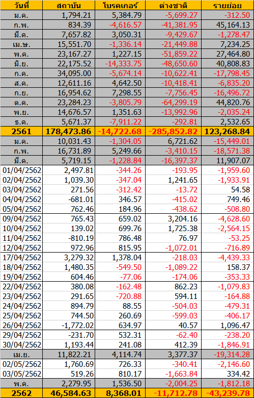 Sinthorn Sumamry 3/5/2562 : ต่างชาติขายสุทธิ -1,663.84 ลบ.