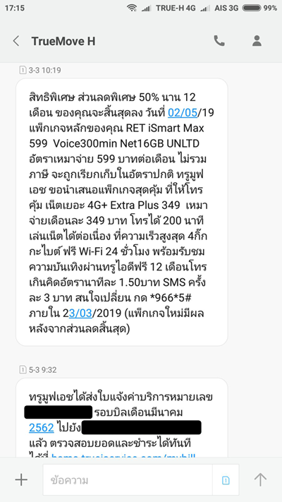 ก่อนหน้านี้จ่ายรายเดือนที่ True เดือนละ 300 บาท ได้เน็ต 16GB โทรฟรี 300 บาท