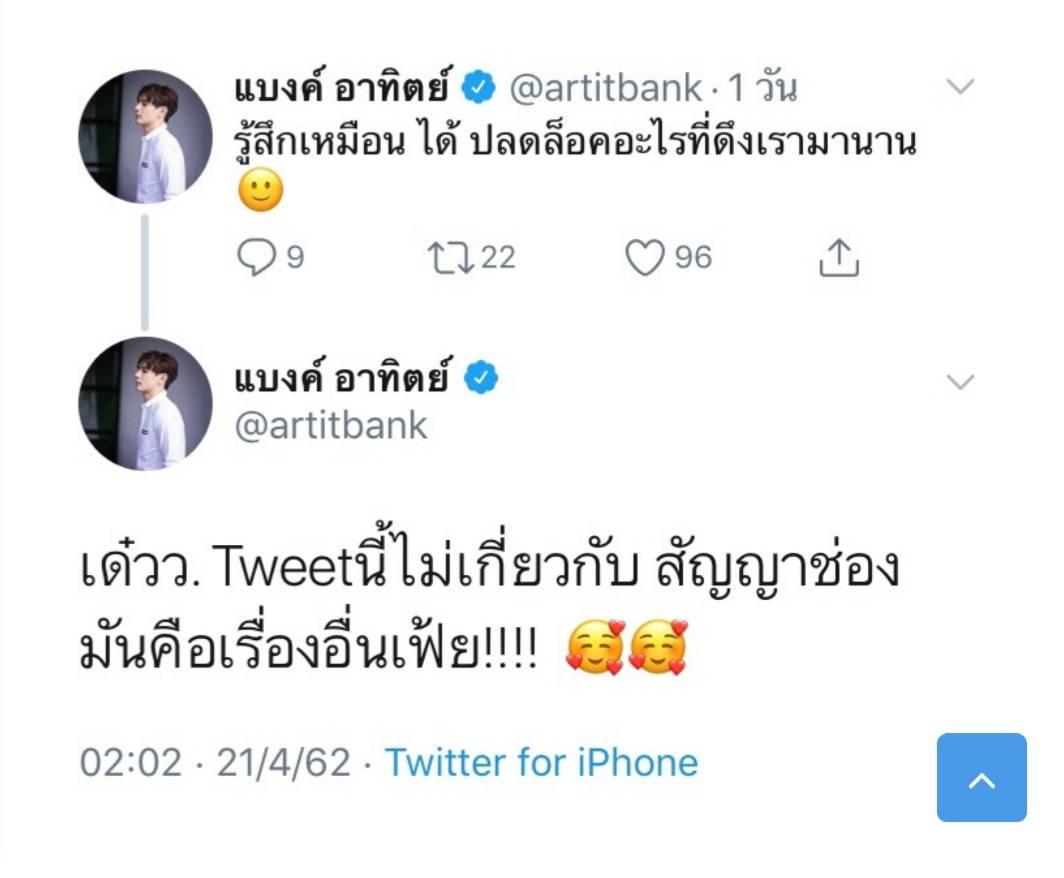 สำหรับสัญญาตอนนี้หมดสิ้นปี ที่เราโพสต์ปลดล็อกอันนี้ไม่เกี่ยวกับสัญญา ที่เราโพสต์ปลดล็อกมันคือปลดล็อกในโลกส่วนตัว ได้ไปเที่ยวบ้าง ตอนไปเที่ยวตุรกี แต่ก็มีคนไปแคปว่าเราปลดล็อกจะได้ออกจากช่อง เอาจริงนะผมอยู่ช่อง 7 มีแต่ได้กับได้ เพราะช่องให้โอกาสผมตลอด เมื่อก่อนก็ไม่เคยมีงานเข้ามาเยอะขนาดนี้อะพูดตรงๆ ตั้ง20-24 เล่นละครมา 2 เรื่อง แต่ตั้งแต่ผมเข้ามาช่อง 7 เล่นละครมา 7-8 เรื่อง มันเกินคำว่าปลดล็อกเพราะได้โอกาสมาตลอด อยากจะบอกว่าในทวิตคือความเวิ่นของนักแสดง มันไม่ได้เกี่ยวกับสัญญาช่อง