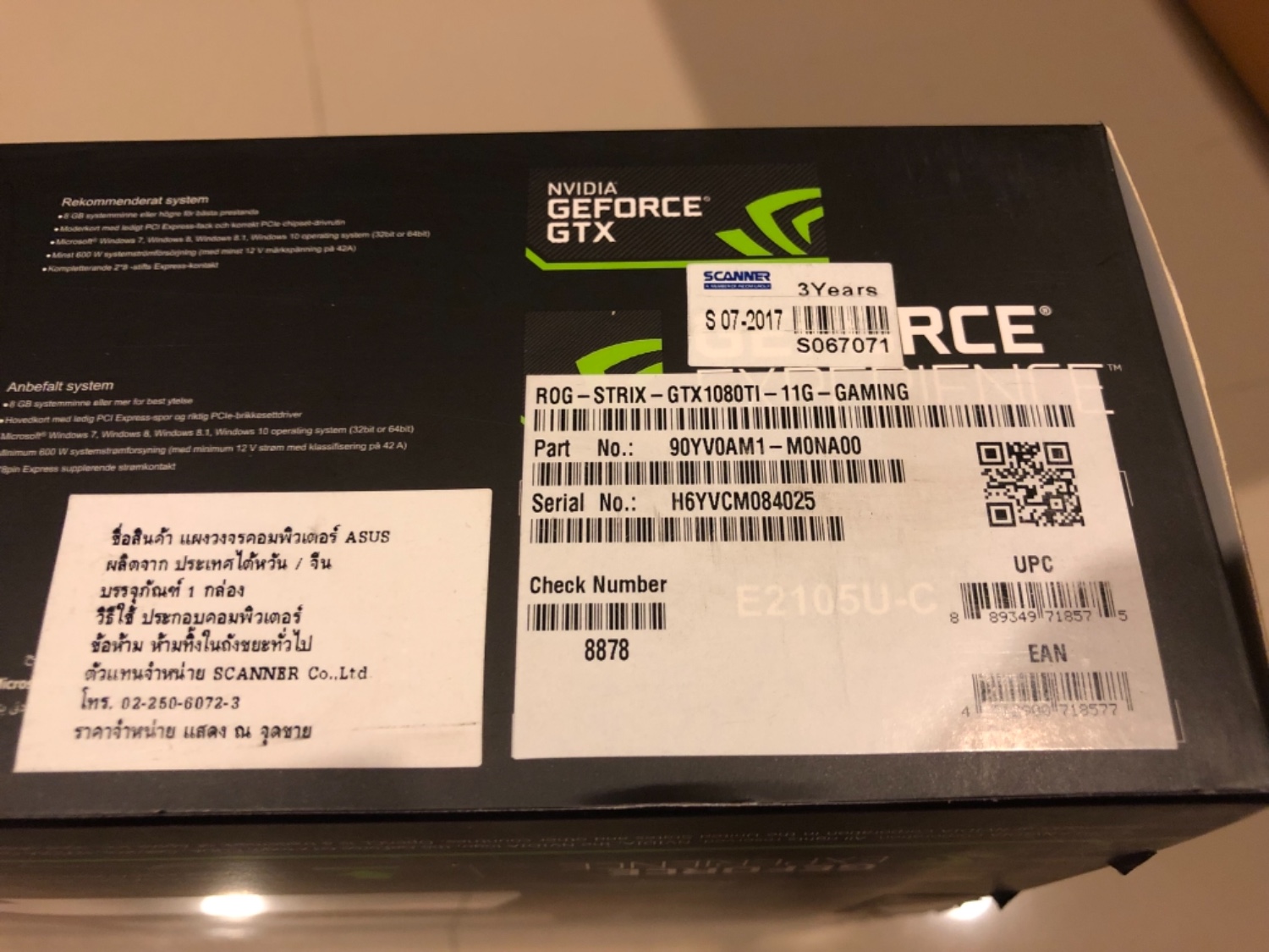 เมื่อได้ของ พบว่า S/N บนตัวการ์ด กับ S/N บนกล่อง ไม่ตรงกัน (ผมไม่รู้ว่าเป็นปกติของร้านนี้มั้ย)