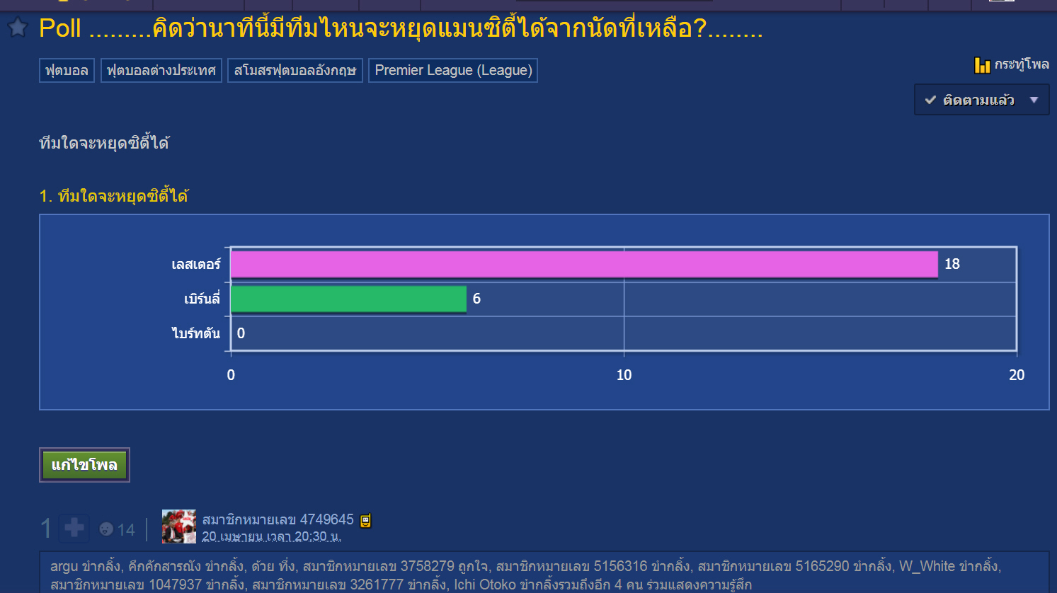 คืนนี้เลสเตอร์ซิตี้จะต้านแมนยูไหวไหมครับ