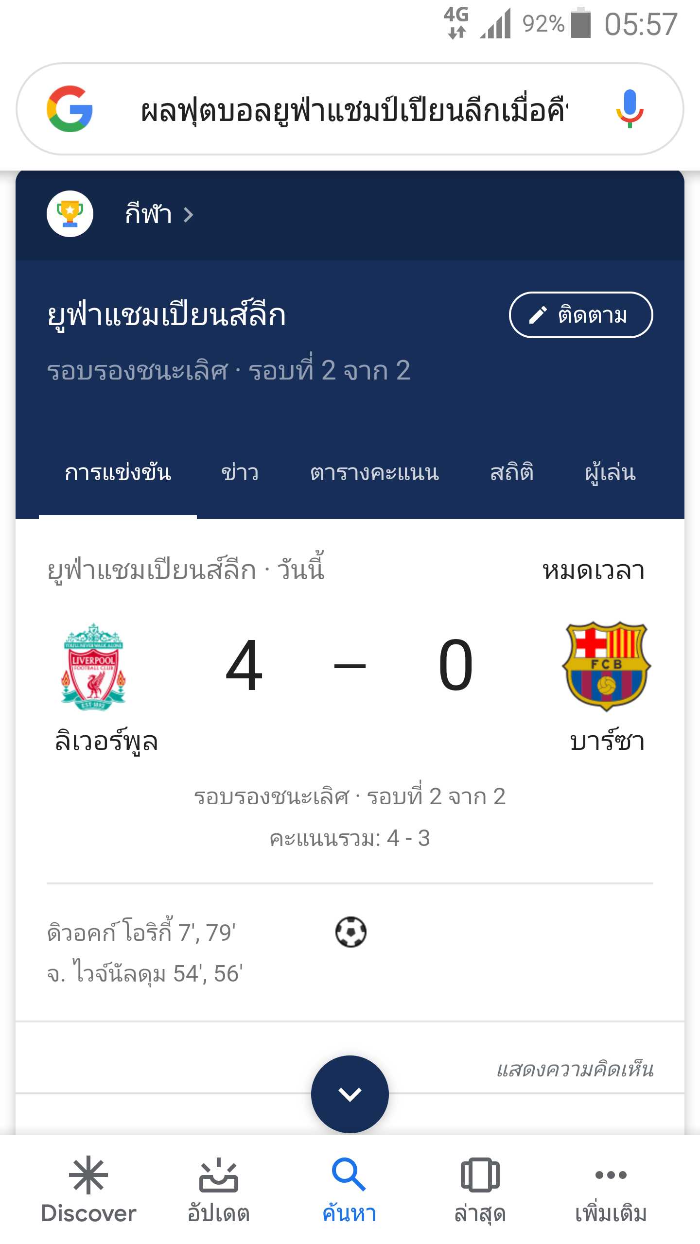 เป็นสกอร์ที่ลิเงอร์พูลต้องการเพื่อเข้ารอบ