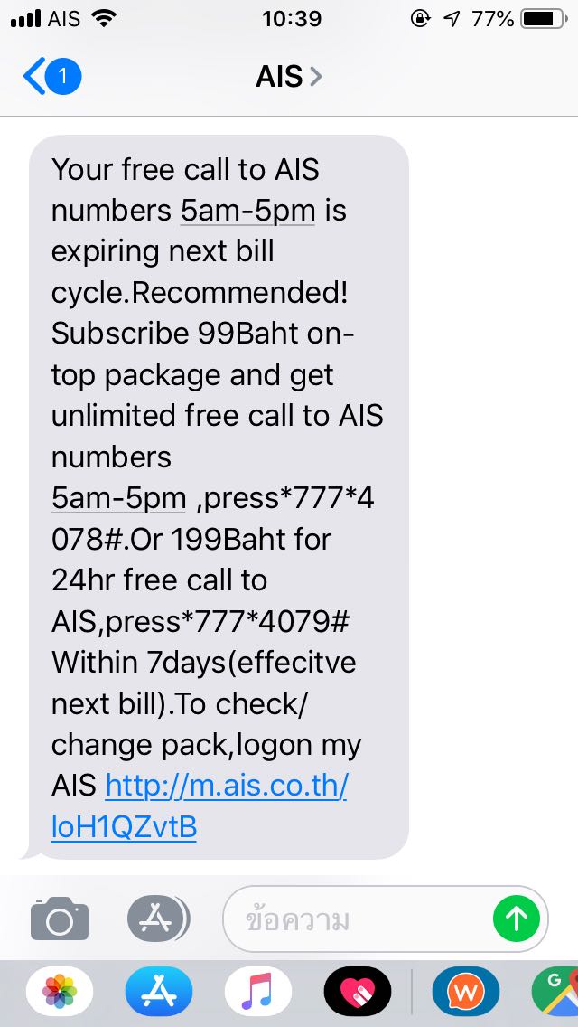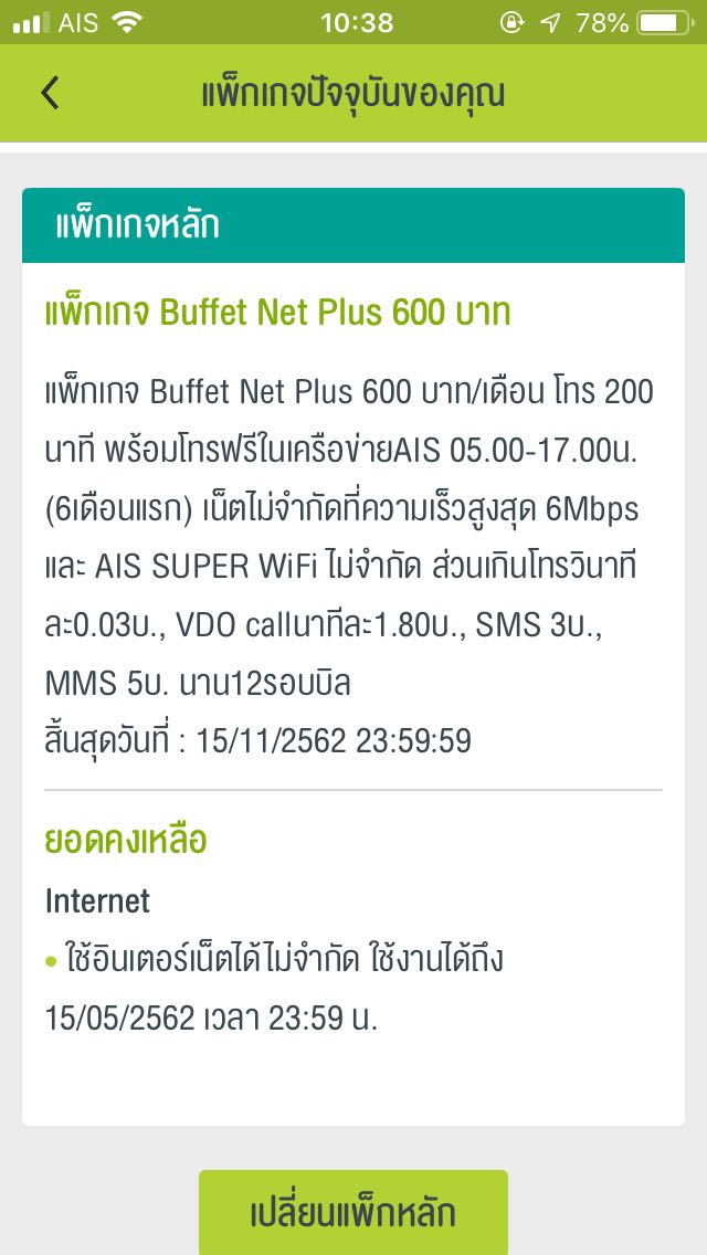 ปกติเราใช้ AIS มาต่อเนื่องไม่ได้มีปัญหา ล่าสุดวันนี้เลยได้เจอ sms ยกเลิกโปรเก่าแบบเราไม่รู้มาก่อน ไม่ได้ยินยอม (เสียความรู้สึกไปละจังหวะนี้) พอโทรไปถามพนักงานบอกโปรที่เสนอให้ดีที่สุดที่เสนอ ไม่มีใครได