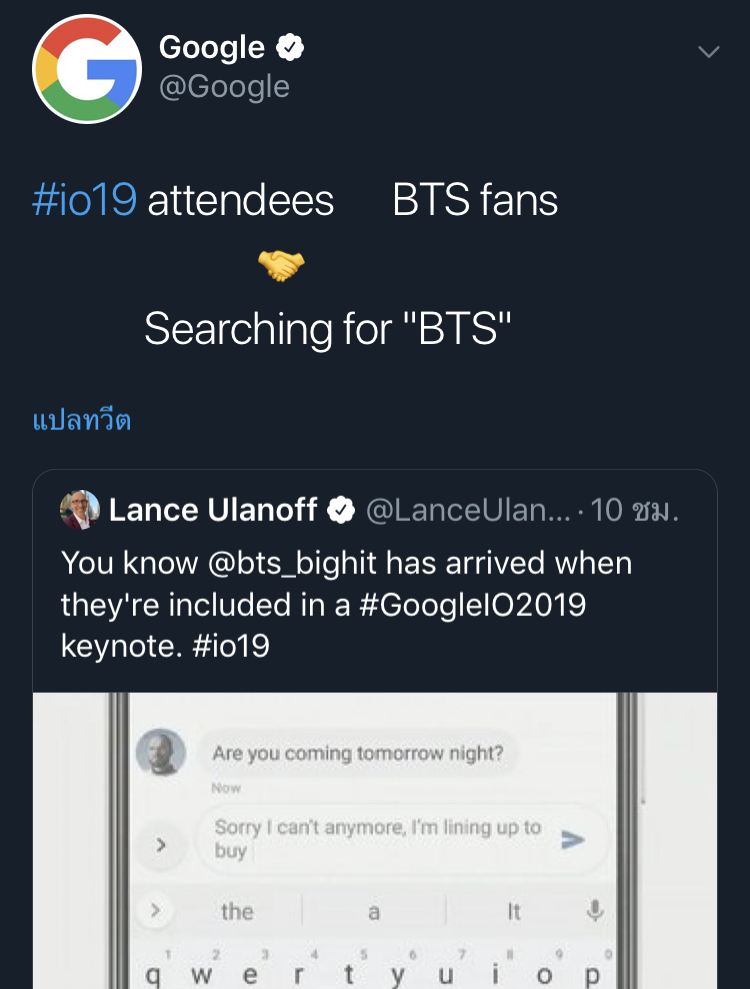 [BTS] ถูกกล่าวถึงในงาน #GoogleIO2019 โดย CEO google