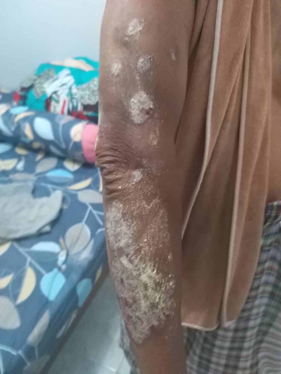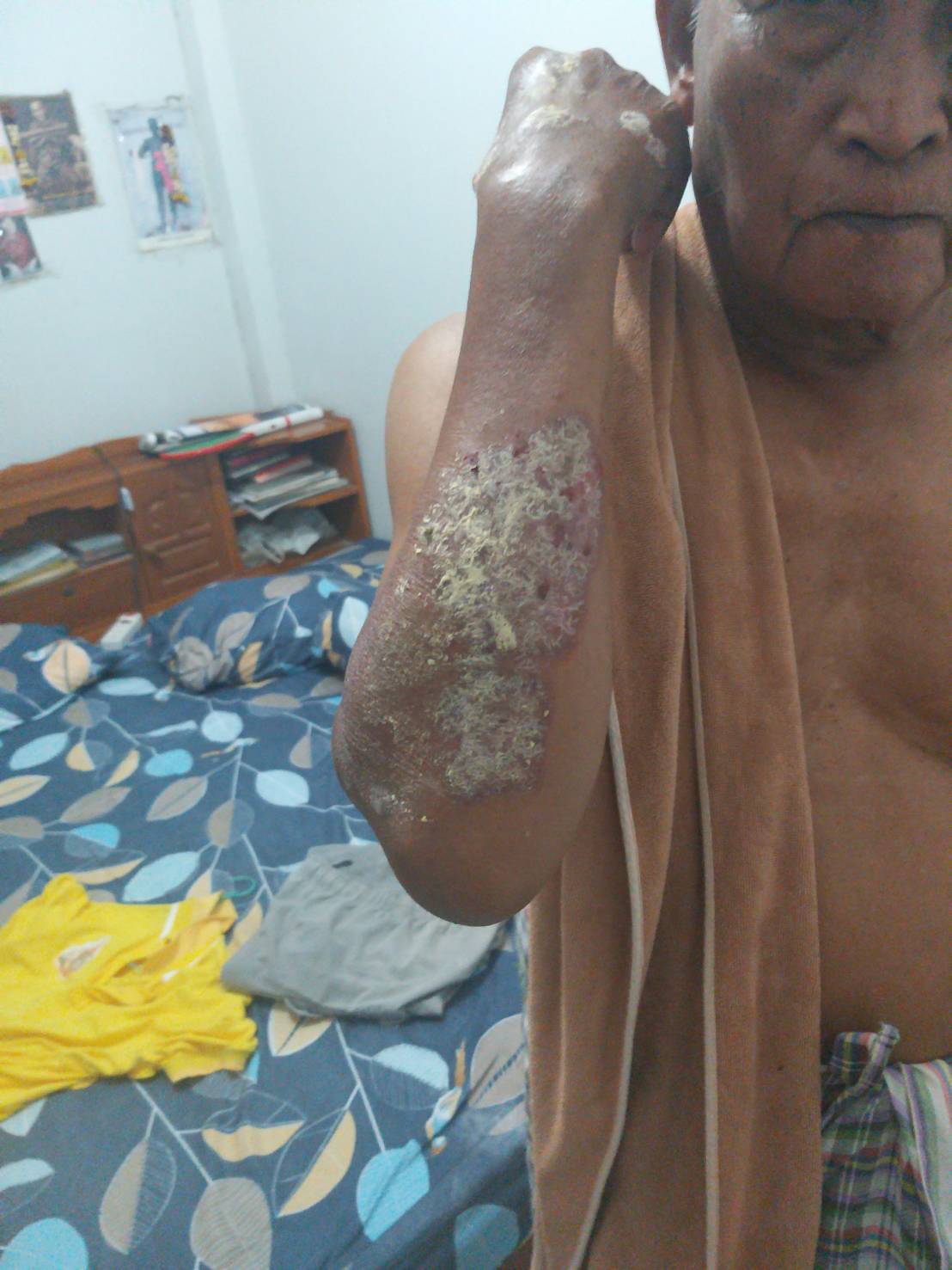 เห็นแล้วตกใจ นางบอกให้พ่อใช้ด้วย เป็น สะเก็ดเงิน หลังใช้ ได้ 6 วัน แผลดีขึ้นมาก