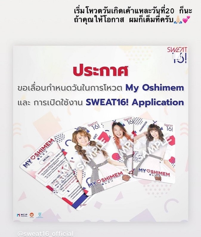 เริ่มจำหน่าย : 20 พฤษภาคม 2562 ช่องทาง “SWEAT16! Official” Website และ Application