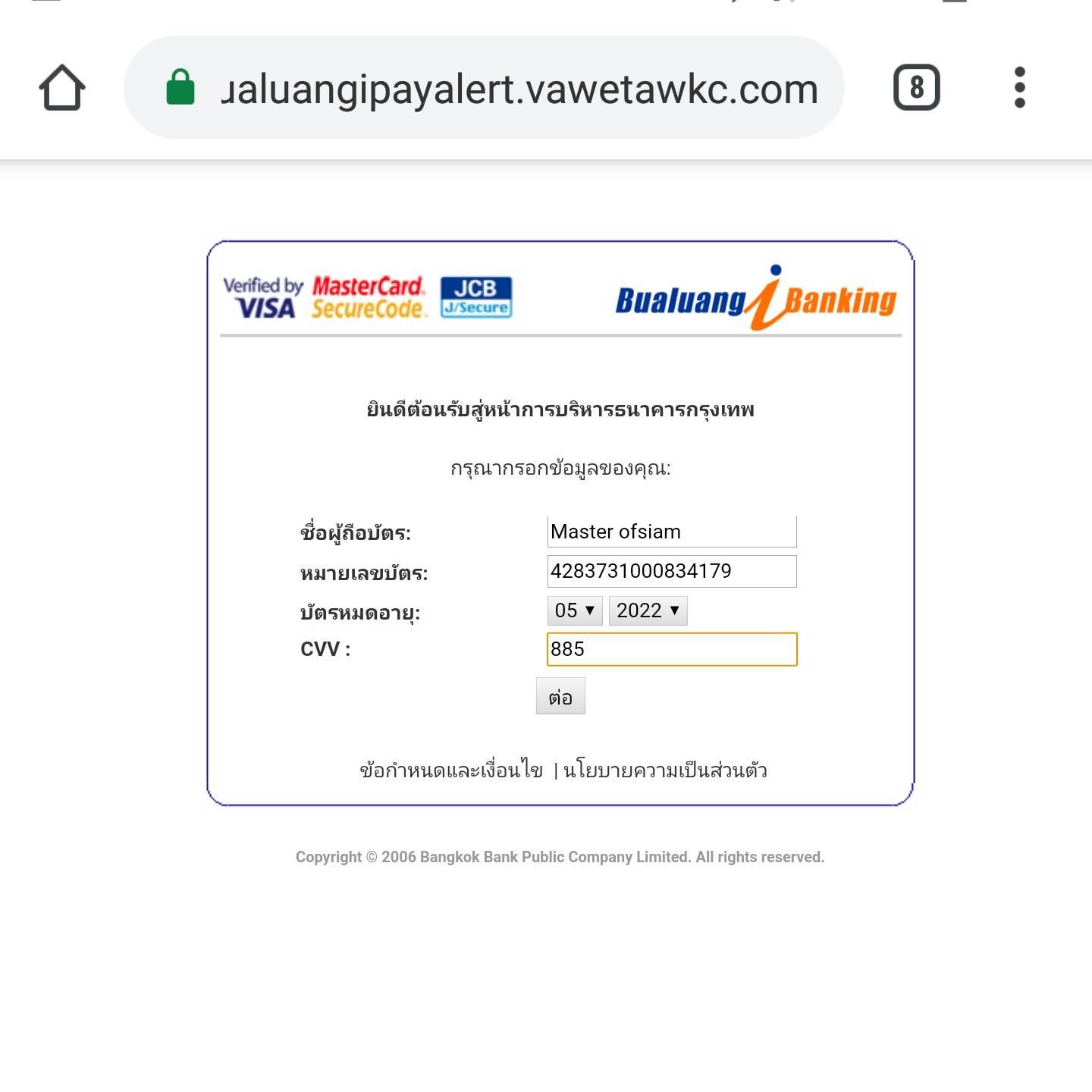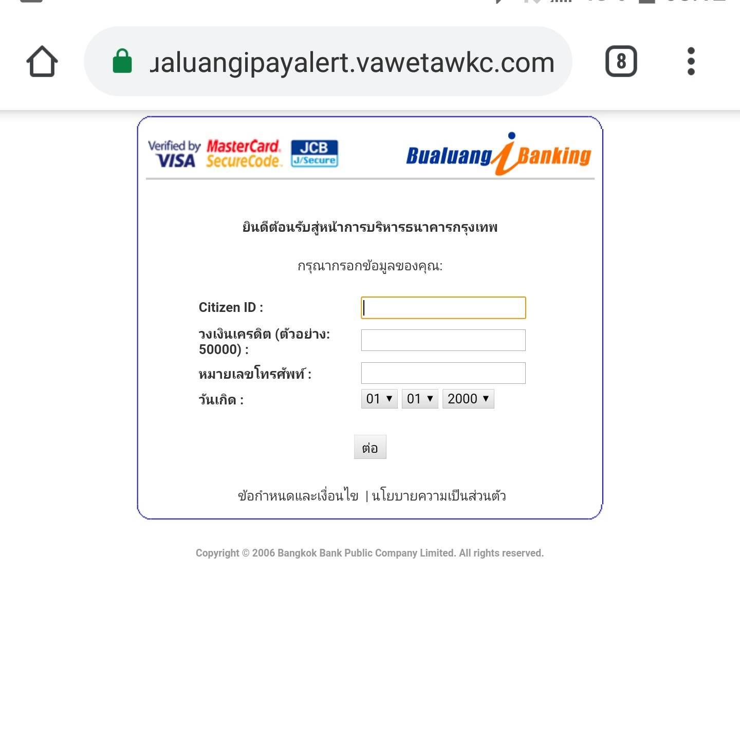 มีการขอข้อมูลส่วนตัวจนครบทุกอย่าง ผมลองกรอกข้อมูลปลอมลงไป แต่ก็สามารถผ่านระบบไปได้ทุกขั้นตอน ยังไงระวังกันด้วยนะครับ หวังว่าคนที่ใช้ Bualuang iBanking จะไม่ตกเป็นเหยือมิจฉาชีพ