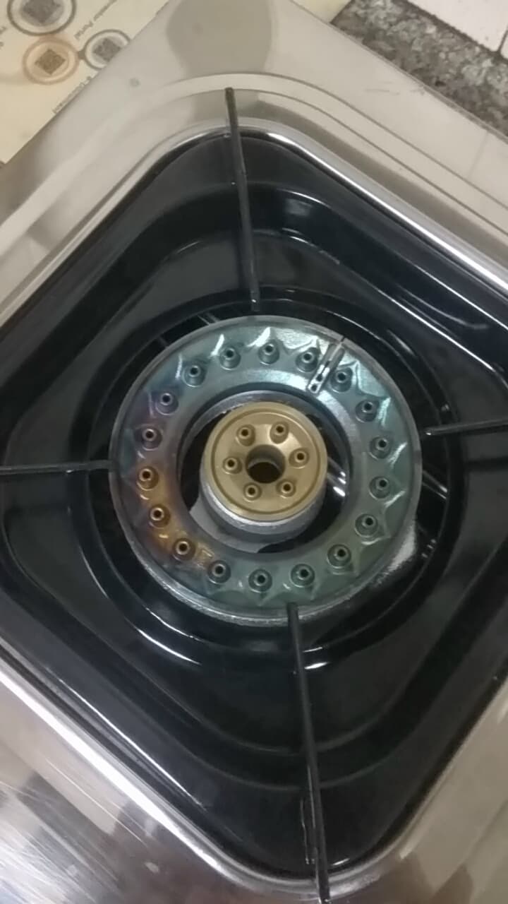 หัวเตาแก๊สทองเหลืองเปลี่ยนสีเป็นฟ้าครามๆ เป็นอะไรไหมครับ แก้ไขยังไง+วิธีทำความสะอาด