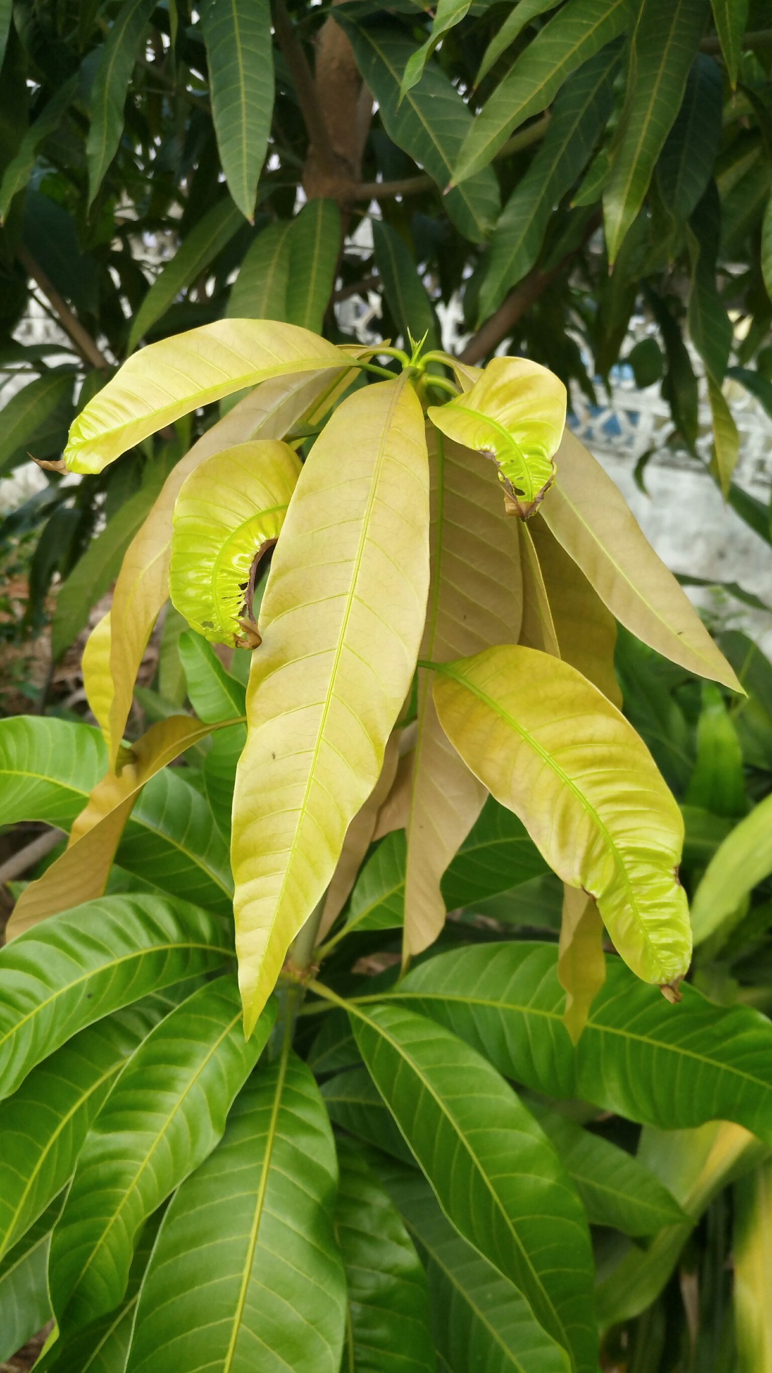ใบมะม่วงที่บ้านเป็นแบบนี้ค่ะ โดนเฉพาะใบอ่อนที่เพิ่งแตกใหม่ ส่วนใบแก่ที่เ่ขียวแล้วบางทีก็มีปลายไหม้ บางใบก็หงิกงอทั้งใบ อยากทราบว่าเป็นโรคอะไร และจะแก้ไขป้องกันยังไงค่ะ ขอบคุณค่ะ