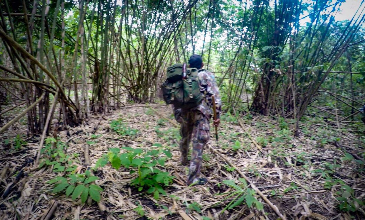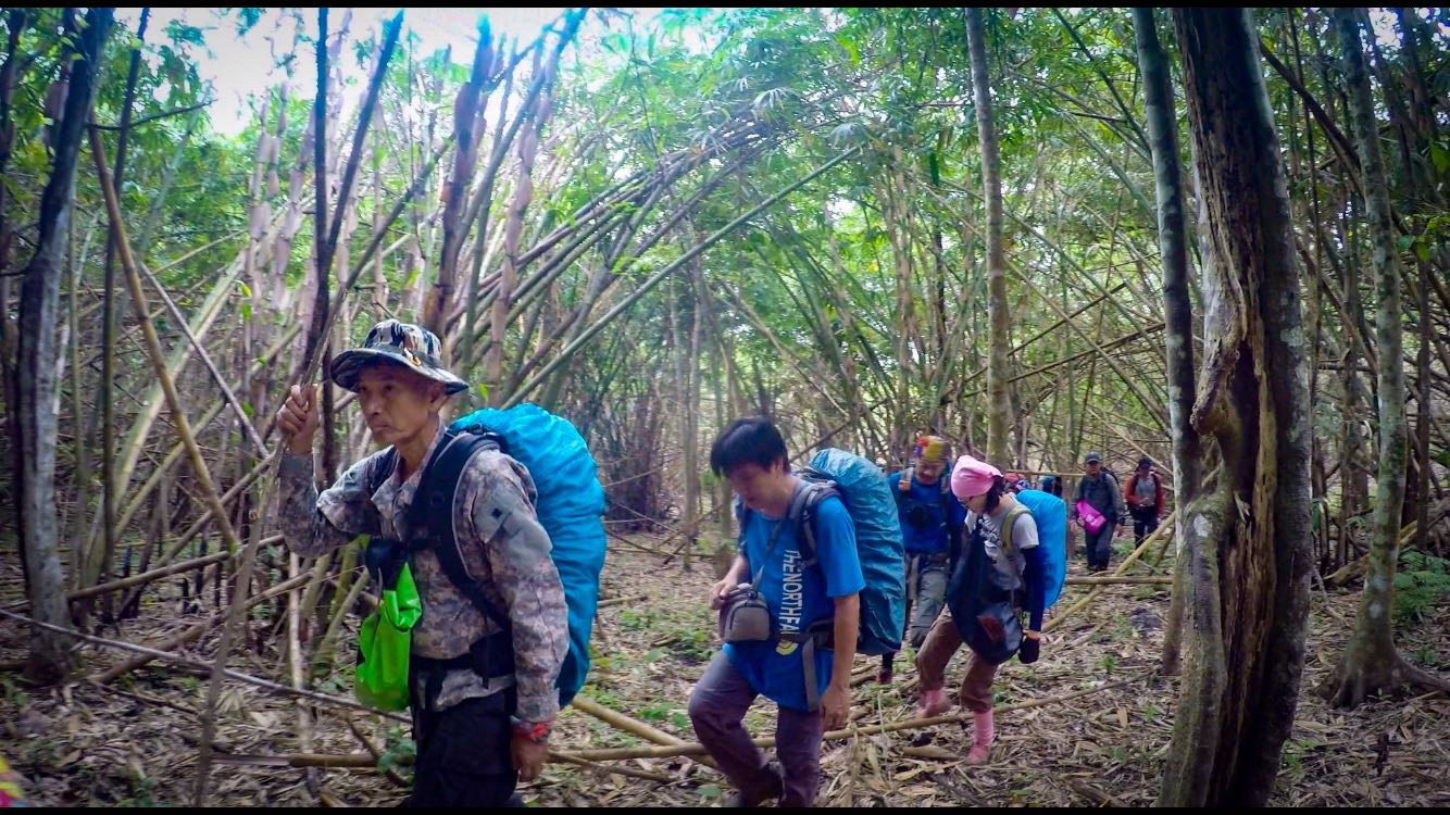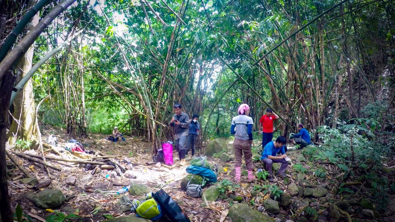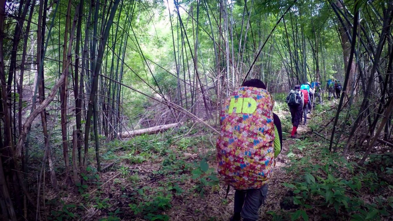 หลังจากพักกันมาได้เกือบชั่วโมง พวกเราก็เริ่มเดินอีกที ตอน 11:30 ช่วงนี้จะเดินผ่านป่าไผ่ ซึ่งบริเวณนี้สภาพเส้นทาง บอกได้เลย น่าหลงมา