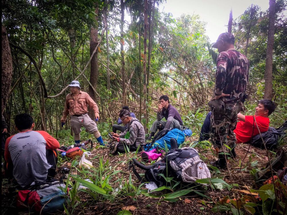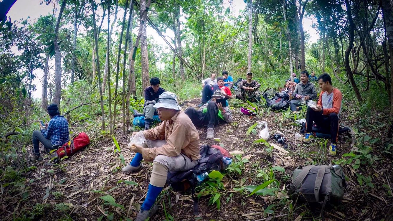 ตอนนี้ 10:20 ที่ความสูงราว 700ม. ซึ่งพวกเราพึ่งเดินมาได้ไม่ถึงชั่วโมง กับระยะทาง ราว1.5km. พี่โจ้เจ้าหน้าที่ ก็บอกให้พวกเรานั่งพักรอตรงนี้ก่อน และ กินข้าวก่อนเลย เพราะ ตอนนี้เดินมาได้ 1ใน3 ของระยะทางทั้งหมด