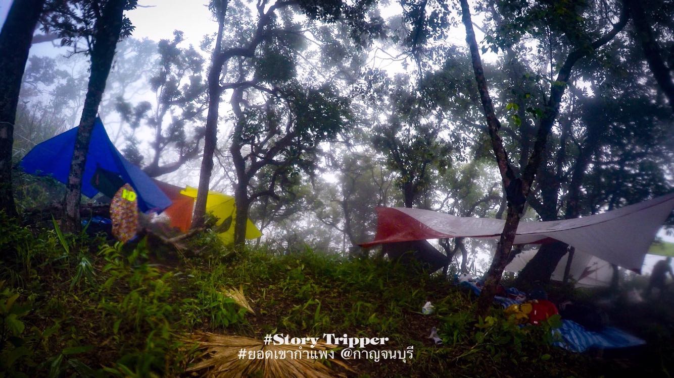 พวกเราเดินถึงจุดแคมป์ ราวบ่าย2 ใช้เวลาเดินทั้งหมด ราว4:30ชม. กับระยะทางราว 5km. แต่วิว ยังถูกปิดด้วยหมอกอยู่ ซึ่งที่นี้สามารถแคมป์ได้ทั้งแบบเต๊นท์ และ เปล แต่เปลดูจะเหมาะกว่าถ้ามาหน้าฝน