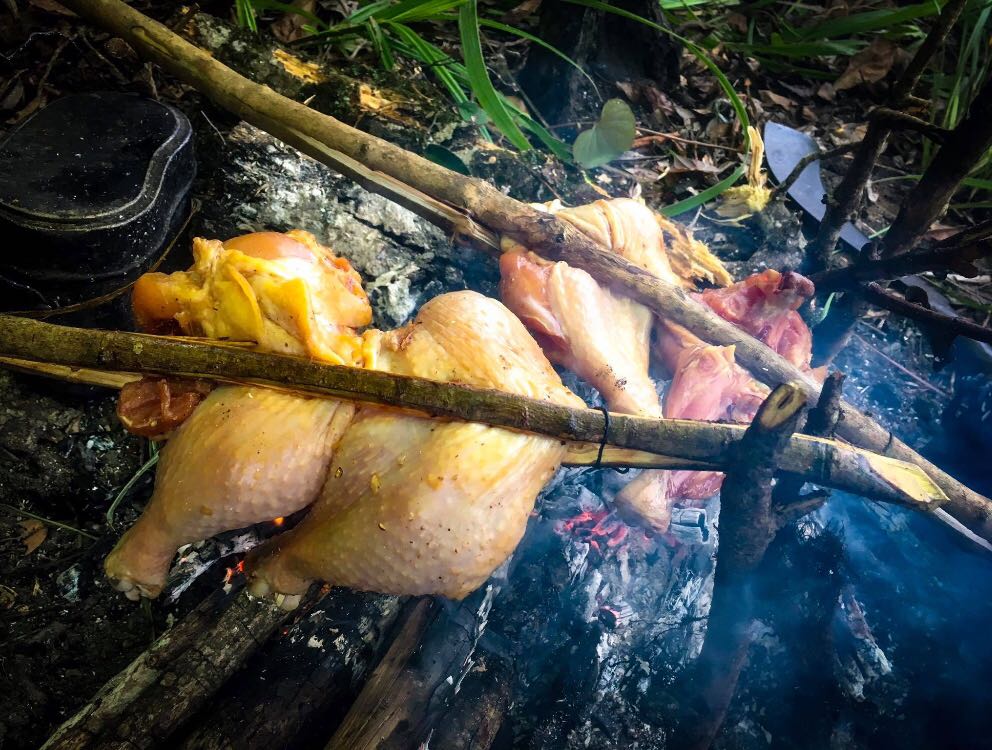 หลังจากกินคอหมูย่างกันหมด หมอกก็ยังคงฟุ้งอยู่ พวกเราจึงเอาไก่มาย่างกินกันต่อไปพล่างๆ โดยได้พี่เจ้าหน้าที่อช.มาช่วยย่างให้ พวกเรากินกันยาวๆ จึงทำให้วันนี้ไม่ต้องกินข้าวมื่อเย็น เพราะ ทุกคนไม่รู้สึกหิวกันแล้ว