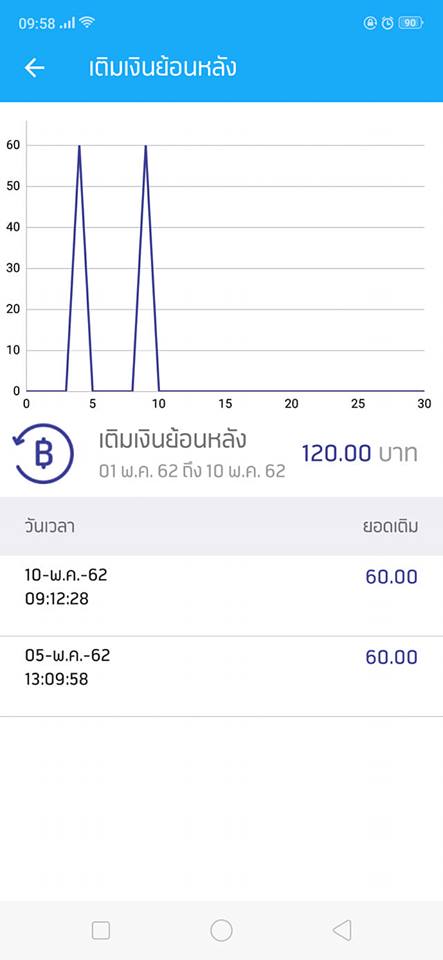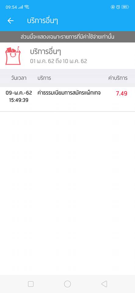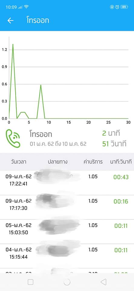 จากภาพเติมเงินล่าสุดวันที่ 05/05/62 ส่วนการโทรให้ดูจากวันที่เราสมัครเน็ตนะคะ ก็คือวันที่ 09/05/62