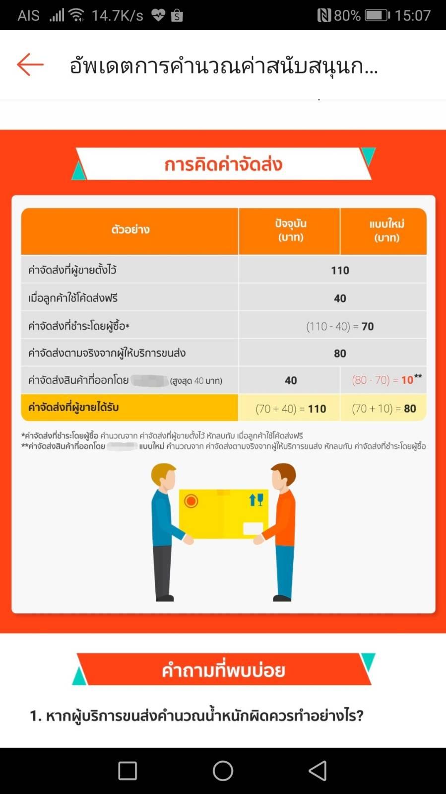 - คนขายตั้งราคาค่าส่ง 110 บาท