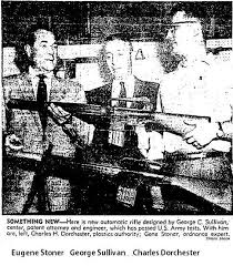 ปืนตระกูล AR-15 หรือ M16 นั้นก่อนที่จะมามีหน้าตาแบบที่เราคุ้นตากันนั้นเป็นผลงานของ Eugene Stoner และ L. James Sullivan (ช่วย) ที่ทำการลดมิติของปืน AR-10 ขนาด 7.62x51mm. เพื่อเข้าร่วมโครงการ Project SALVO ที่ต้องการใช้กระสุน.223 rem.(ต่อมาเปลี่ยนมาใช้ 5.56 x 45 mm.) Small caliber high-velocity prototype.