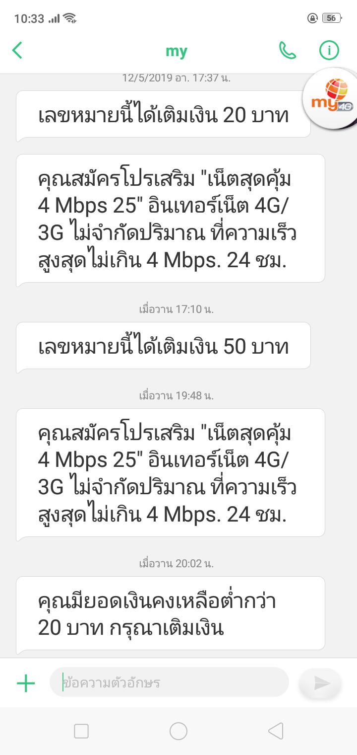 เมื่อวันจันทร์ที่ 13 ที่ผ่านมา ช่วงเวลา 1 ทุ่ม ผมพึ่งตื่นแล้วไปอายน้ำ จนทำอะไรเสร็จออกไปงานศพ แต่นัดพี่ไว้ที่นึ้งก่อนผมไปถึงเวลา 19:37 น. ผมไปถึงจอดแล้วเช็คนะว่าตัวเองเปิดใช้งานอินเตอร์เน็ตไหม ผมก็เช็คยอดเงินตลอดยังเหลือ 65 บาทเท่าเดิม ก็กดสมัครเน็ตไปโปร 4g 25 บาท 1 วัน ผมรอนานมากกว่าข้อความจะเข้าผมเช็คทุกคนก็เป็นเหมือนผมว่าข้อความเข้าช้า พอช่วงหลังสมัครเน็ตผมก็ขับรถไปงานศพ ข้อความเข้าแล้วช่วงเวลา 19:48 ผมถึงงาน 20:00 พอดีเลยเปิดเน็ตเพราะเห็นข้อคงามเข้ามาพักแล้ว เล่นได้ 2 นาที sms แจ้งเตือนว่าเงินต่ำกว่า 20 บาท ผมรู้ในใจเลยว่าโดนอีกแล้ว จาก 30 กว่าบาทเหลือ 0 บาทเลยครับผมเลยรอจนเช้าโทรไปช่วง 10 โมงเช้าวันอังคารที่ 14 สอบถามพนักงาน รู้ไหมพนักงานบอกผมว่า ผมได้เปิดใช้เน็ตเวลา 19:28 ผมเลยเห้ยตอนนั้นผมยังอยู่บ้านอยู่เลยยังใช้ไวไฟบ้านอยู่เลย แล้วเช็คตฃอดด้วยว่าตัวเองใช้อินเตอร์เน็ตอยู่ไหม สรุปเลยนะครับ พนักบงอ้างจากระบบ และผมก็ไม่ได้เงินคืนสักบาท
