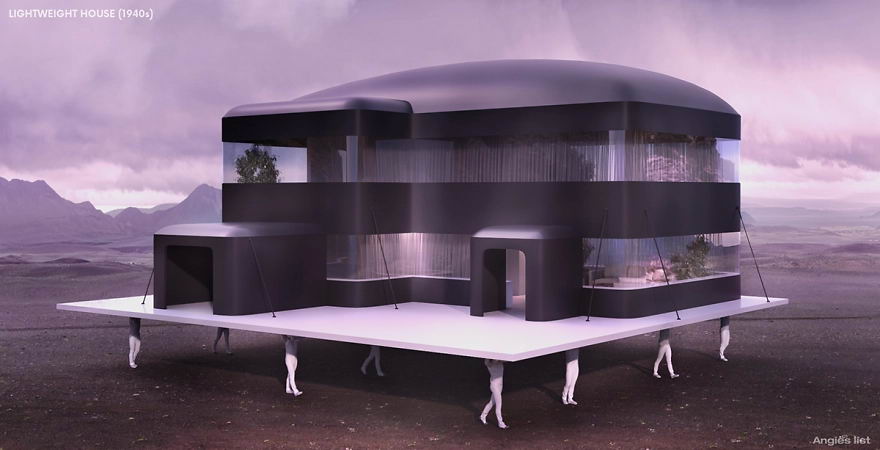 การทำให้บ้านกลิ้งได้อาจดูไร้สาระกว่าการทำให้บ้านมีน้ำหนักเบาเยอะมาก โดยในหนังสือ This Unfinished World ที่ถูกตีพิมพ์ในเดือนมกราคมปี 1942 ระบุว่า จะมีการนำ “แอโรเจล” ที่มีน้ำหนักเบามากมาใช้เป็นส่วนประกอบในการสร้างบ้านเรือหรืออาคารที่สามารถทนทานต่อแผ่นดินไหวได้ แถมยังใช้ทรัพยากรที่น้อยกว่าการก่อสร้างแบบปกติ