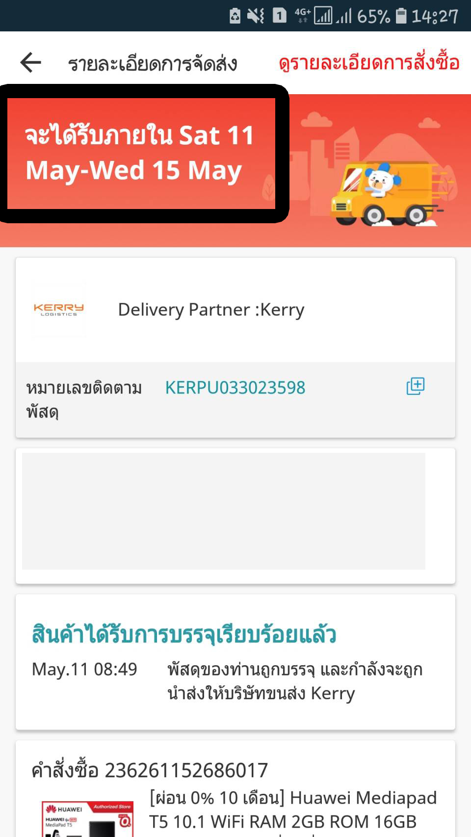 ต่อมาวันรุ่งขึ้นวันที่ 11 พ.ค. 2019 มีการแจ้งเตื่อนเวลา 08.49 น. ว่ามีการบรรจุสินค้าเตรียมส่งแล้ว