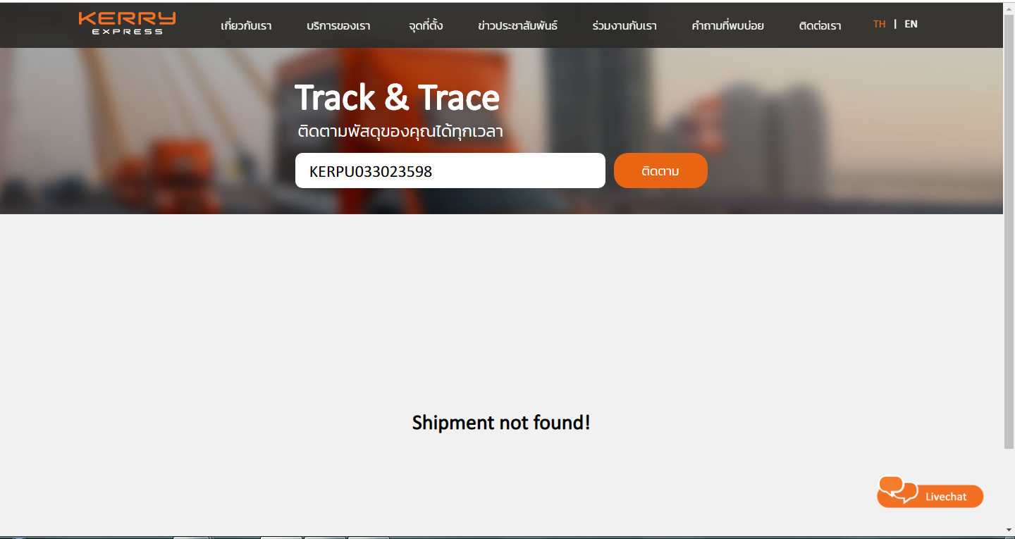 สังเกตว่า มีเลขพัสดุ ขึ้นมา แต่ เมื่อไปตรวจสอบไม่เจอเลขพัสดุดังกล่าว (ตรวจสอบ ณ วันที่ 16 พ.ค. 2562)