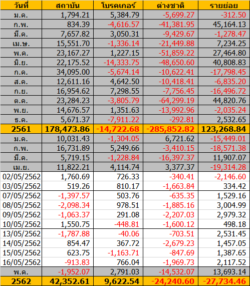 Sinthorn Summary 16/5/2562 : ต่างชาติขายสุทธิ -1,969.73 ลบ.
