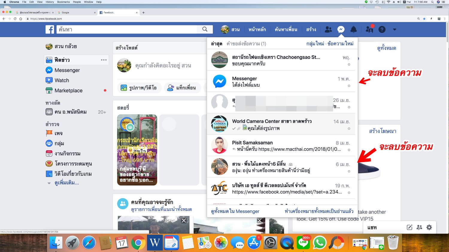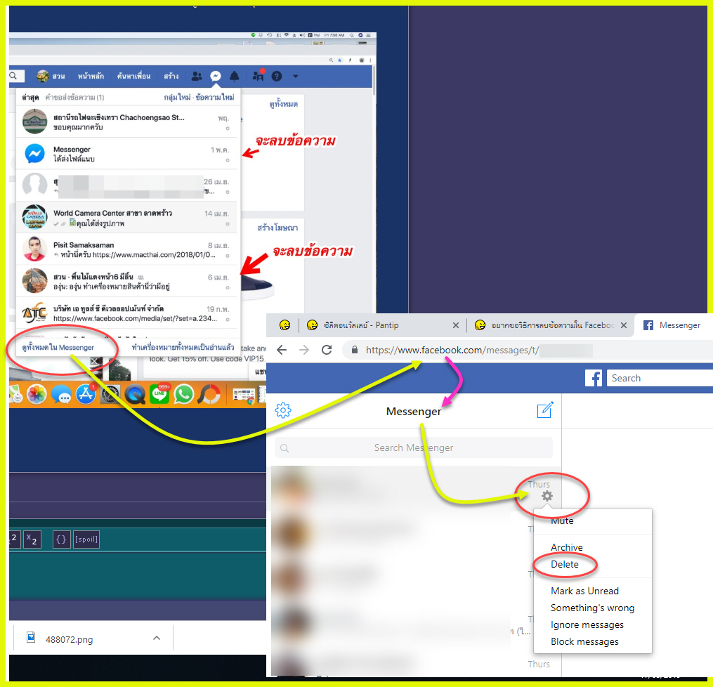 อยากขอวิธีการลบข้อความใน Facebook ได้อย่างไร ลบทีละข้อความ มีรูปภาพประกอบ ขอบคุณครับ
