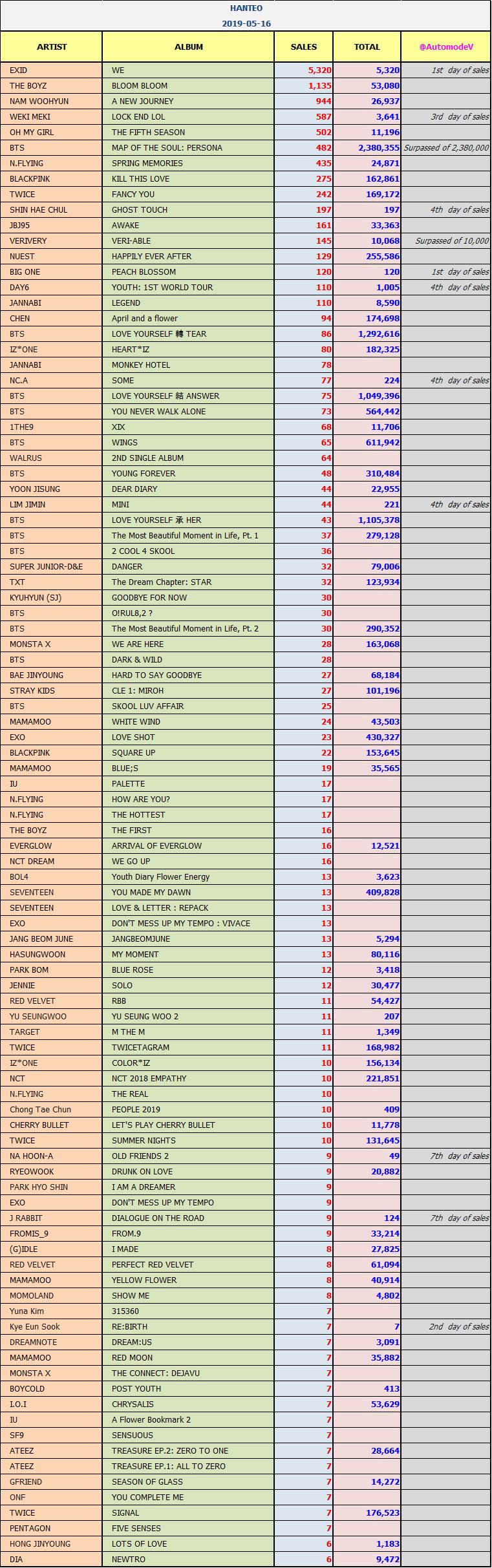 ยอดซื้ออัลบั้มจากชาร์ต HANTEO 16 พฤษภาคม 2562 + WINNER Now!!