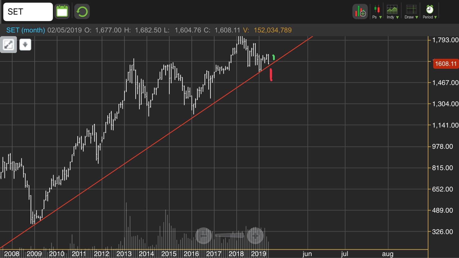 Resistance becomes support. เส้นนี้ถ้าพรุ่งนี้ลงมาแรงๆต่อเนื่องจากวันนี้มาชนหรือต่ำกว่า ก็หาจังหวะเข้าเพื่อเล่นเด้ง ตลาดไทย สนุกสนาน