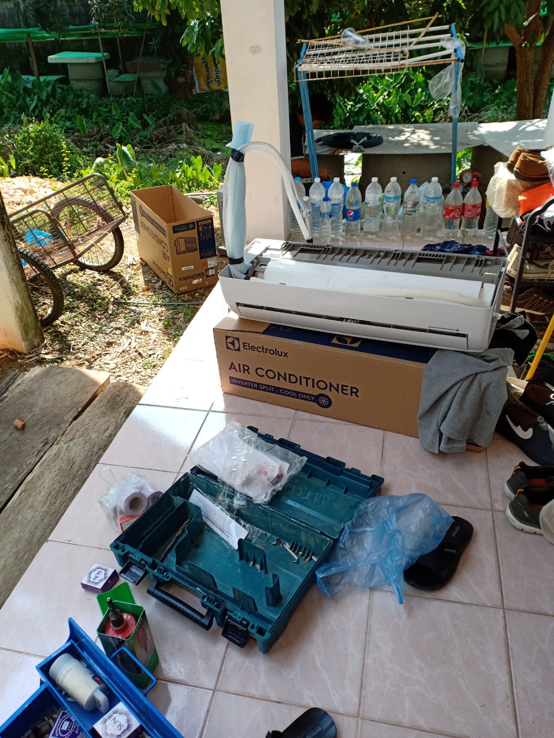 ส่วนในเรื่องของการแวคคั่มจากที่ไปค้นหาข้อมูลมา ส่วนนี้เป็นส่วนที่สำคัญอีกส่วนหนึ่ง แต่เราก็มัวอยู่ดูช่างแต่ภายในห้อง ไม่ได้ออกไปดูช่างอีกคนที่ทำอยู่ข้างนอกเลย หลังจากภายในติดตั้งจนสุดท้ายต่อไฟเข้าระบบเรียบร้อย ประมาณ 10-15 นาที เราก็ออกไปดูข้างนอก ถามช่างว่า แวคคั่มหรือยังครับ ช่างบอกเรียบร้อยแล้ว เราก็ งง ห่ะ ทำไมเสร็จเร็วจัง ช่างก็เริ่มเก็บของ เราก็ยัง งง ๆ อยู่ ที่ไปหาข้อมูลมาคือ 30 นาทีขึ้นไป ช่างก็ให้เปิดแอร์ 16 องศา ประมาณ 1 ชม. แล้วค่อยเปิดตามปกติ แล้วช่างก็ไปติดตั้งตามคิวที่เหลือ