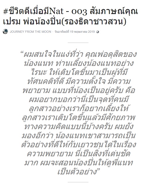 https://www.facebook.com/notes/journey-from-the-moon/ชีวิตดีเมื่อมีnat-003-สัมภาษณ์คุณเปรม-พ่อน้องปิ่นรองธิดาชาวสวน/561899280884997