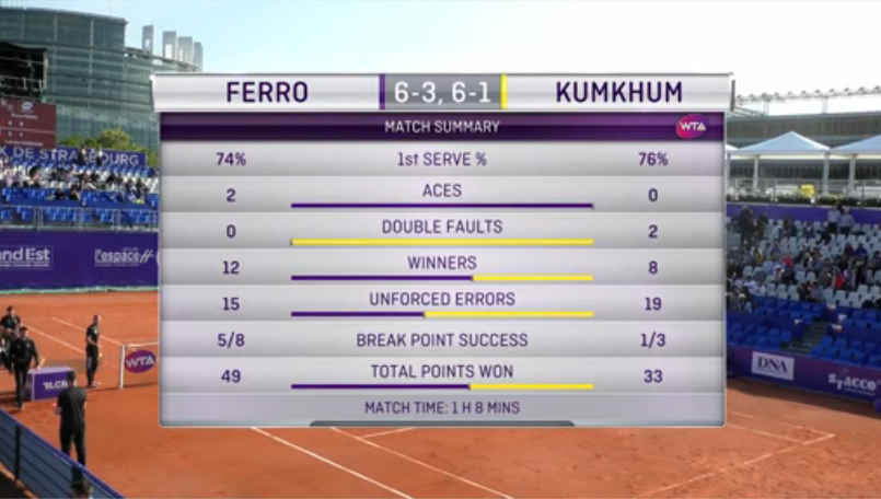 น่าเสียดายวันนี้เสริฟโอเคขึ้นละ แต่ยิงออกกระจุยกระจาย บวกกับคู่แข่งเน้นตีง่ายไม่เออเรอร์เอง เลยชนะไปได้สกอร์ขาด แต่แต้มในแต่ละเกมดิวซ์กันเยอะมาก แต่แต้มสำคัญลักพลาดก่อน เลยแพ้ไปในที่สุด คงต้องลุ้นช่วงปลายสัปดาห์สำหรับสายใน Roland Garros จะเป็นอย่างไรบ้าง