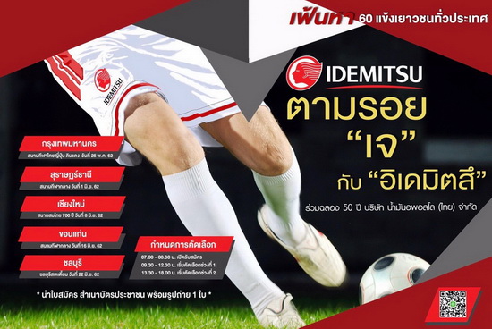 สำหรับกำหนดการณ์การคัดเลือก โครงการ “ตามรอย เจ กับ อิเดมิตสึ” เปิดคัดเลือก 5 สนาม 5 ภูมิภาค ดังนี้
