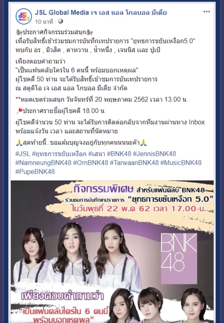 App Bnk48 เค้าเคยอัพตารางไหม งานประกาศรางวัลที่ผ่านมาก็ไม่ได้แจ้งก่อนว่าจะมีใครไปบ้างรู้ว่าเฌอปรางไปเพราะน้องบอก ทำไมตารางอื่นๆถึงไม่ค่อยอัพเดท ใน Facebook มีแค่ไลฟ์ตู้ปลา กับตารางงานจับมือ ไลฟ์งานบางงาน บางงานแฟนคลับต้องหาเอาเอง ตอนน้องไปโปรโมทเพลงแต่ไม่ขึ้นในตารางของ วันโปรโมทเพลงมีงานที่ไหนบ้าง ถ้าบอกไม่เน้นเพลงแล้ว บอกกว่าเน้นด้านอื่นแล้วทำไมถึงไม่ค่อยโปรโมทงานแสดงน้องอื่นๆเลย หรืองานเดี่ยวน้องๆก็ไม่ค่อยโปรโมท ตกลงแล้ว บอค ตกลงเน้นอะไร