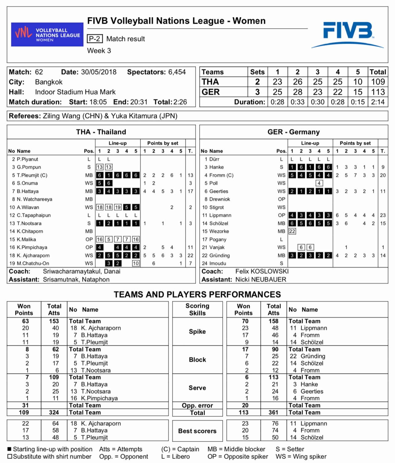 สถิติ VNL 2018 ไทย เยอรมัน ค่ะ ตัวละครคล้ายๆเดิมนะคะ มาดูกันค่ะ